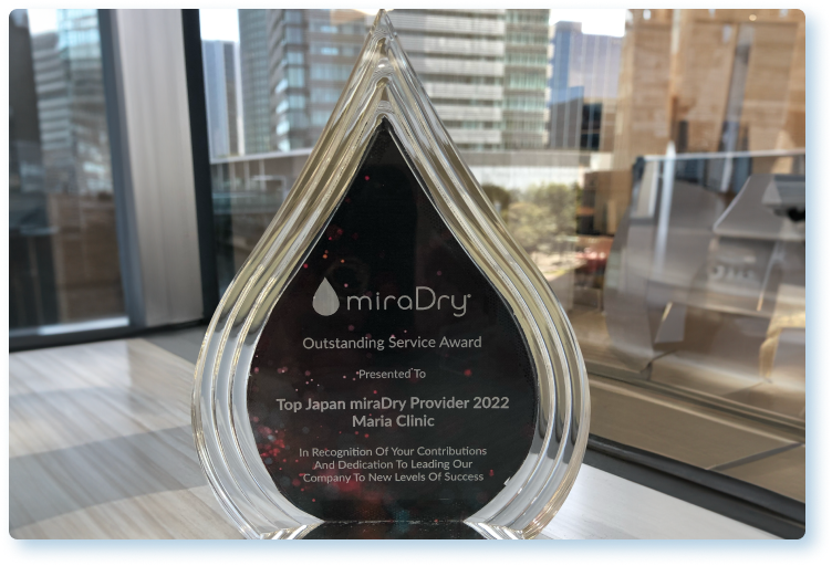 この度、マリアクリニックはミラドライ本体を製造している米国ミラマー社が創設した「Top Japan miraDry Provider 」に2022年と2023年の2年連続選出されました。